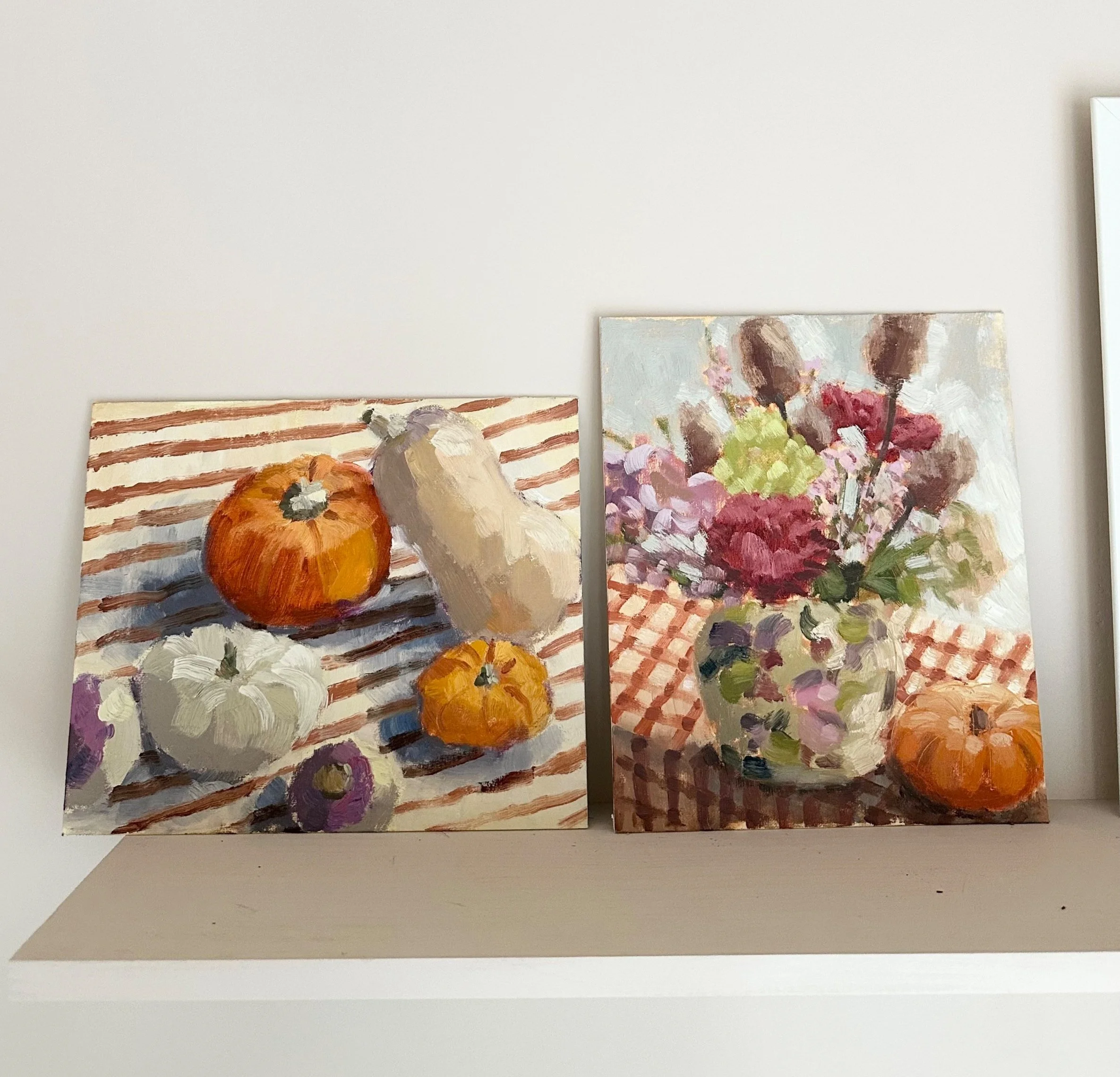 Oil painting landscapes and still life presents a wonderful opportunity to capture the beauty of nature and the abundance of Ella’s own garden and surroundings. Her background as a florist further informs her work, as she draws on her understanding of colour, composition, and the ephemeral nature of blooms.